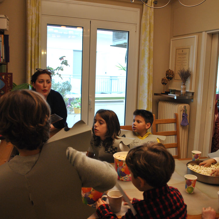 10 niños, hijos de alumnos, antiguos y actuales, se reunieron para vivir una experiencia única de caballería. Aprendieron a saludar en español, llevaron su armadura de cartón y así emprendieron su largo camino hacia lo nuevo. Eran todos de origen noble: Don Anastasio, don Dimitrio, don Juan, don Cristo, don Felipe, don Alejandro, don Miguel, doña Elpiniki, doña Mirtó y doña Atenea.
